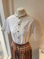 皮邊衣領復古白襯衫(古着)