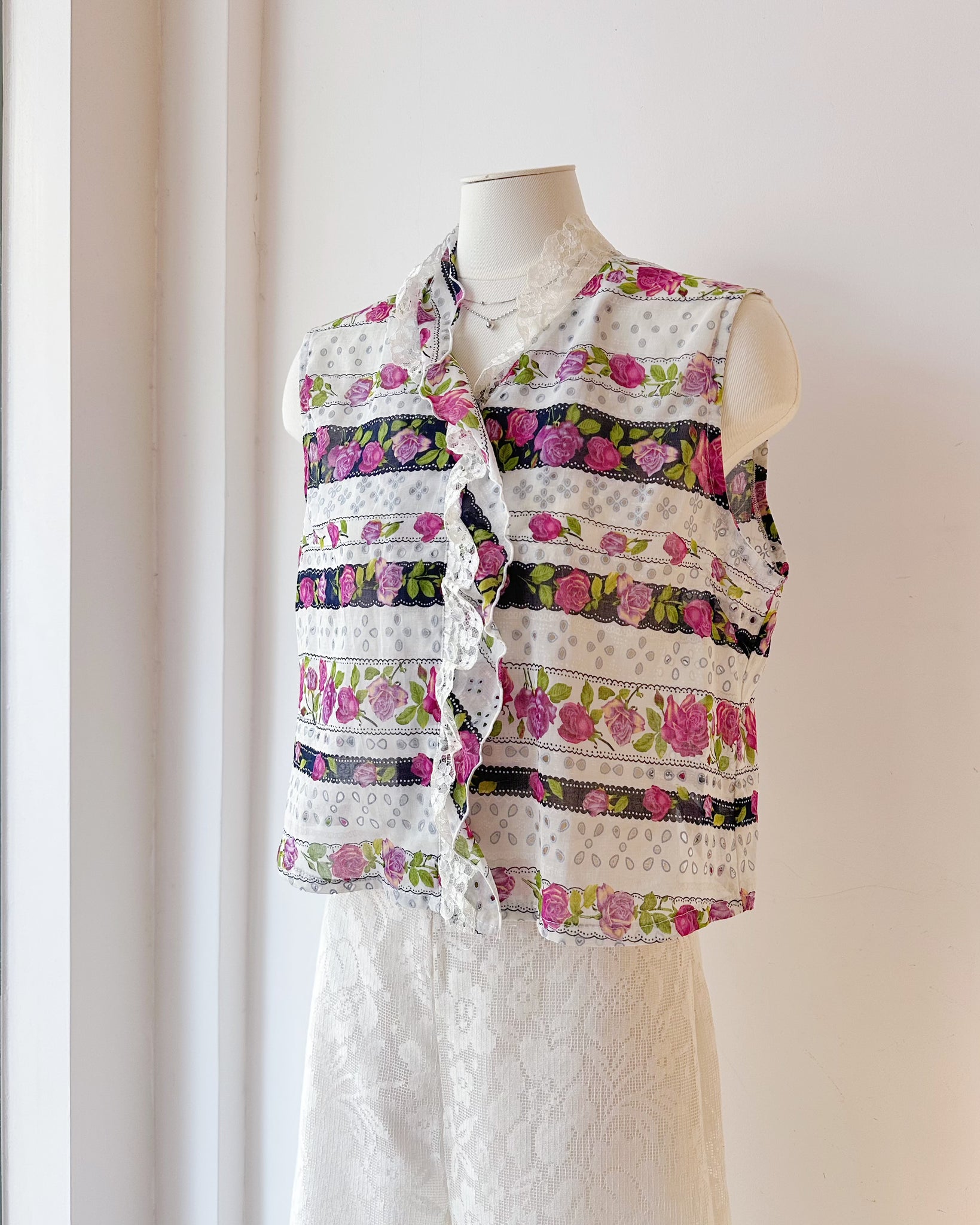 WITZ EXCEED 玫瑰印花背心(古着/日本製/M-L)